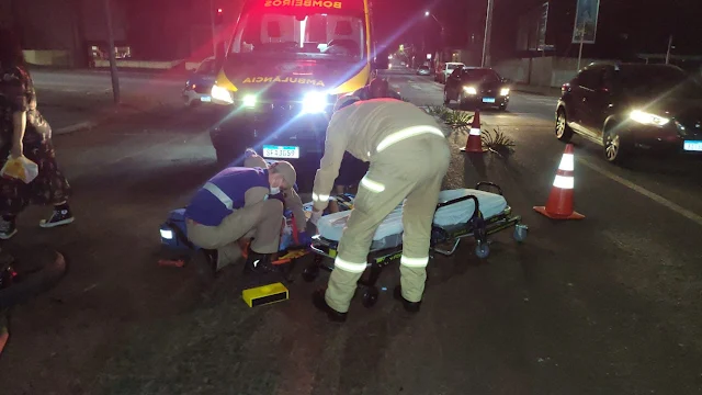 Uma mulher de 33 anos ficou ferida após ser atropelada por uma moto na noite deste domingo (08), no bairro Neva, em Cascavel. O acidente ocorreu no cruzamento entre a rua Manoel Ribas e a rua Vitória, envolvendo um motociclista de 39 anos.