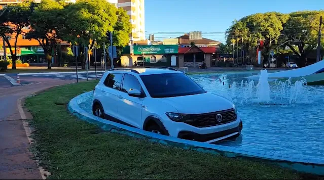 Na manhã desta sexta-feira (27), um carro invadiu a Praça do Migrante, na Avenida Brasil, em Cascavel. Segundo relatos, o motorista perdeu o controle do veículo e acabou ultrapassando a rotatória que fica na entrada da praça.