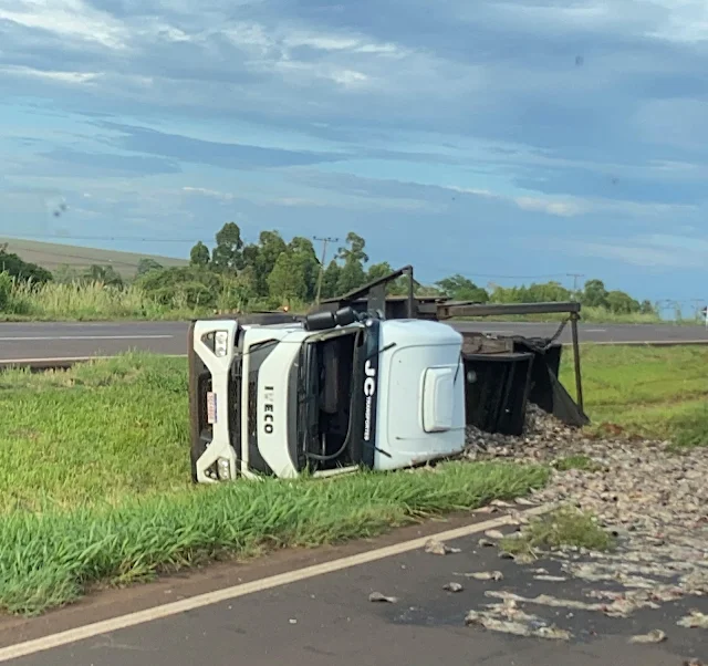 Um caminhão carregado com tilápia tombou na manhã deste sábado (25) na altura do km 218 da BR-163 entre Toledo e Cascavel.